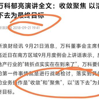 【外资做空的信号?“模范生”万科要“躺枪”】有香港媒体报道,万科面临严峻的生存挑战,到期的公司债券大量到期,缺现金偿还短期债务。大家预计今年年底前无法生存下来。